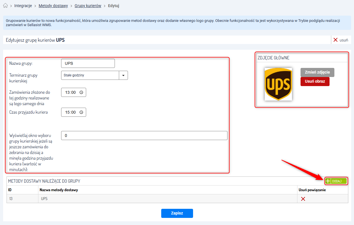 - Otwórz: Administracja – Metody dostawy – Grupy kurierów.