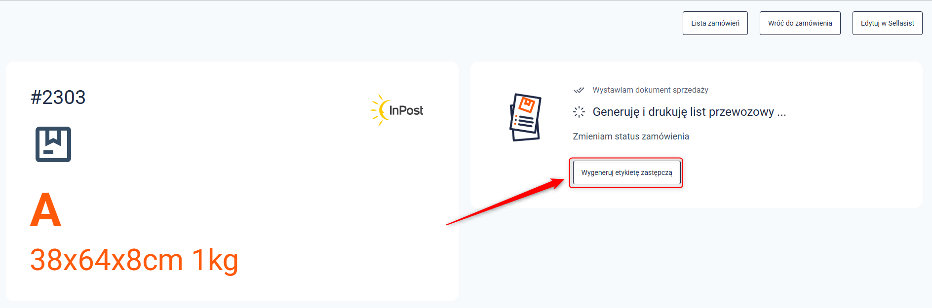 - zmienić status zamówienia na taki, który jasno wskazuje, że czeka ono na wygenerowanie właściwej etykiety. Dzięki temu zamówienia z etykietami zastępczymi nie giną na liście – są od razu oznaczone, zebrane w jednym miejscu i łatwe do sprawdzenia.