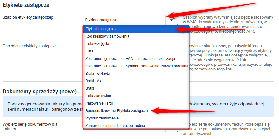 - Włącz etykiety zastępcze i skonfiguruj je z wyprzedzeniem – od grup kurierów, przez szablon etykiety, po ustawienia w WMS i w Asystencie Pakowania,