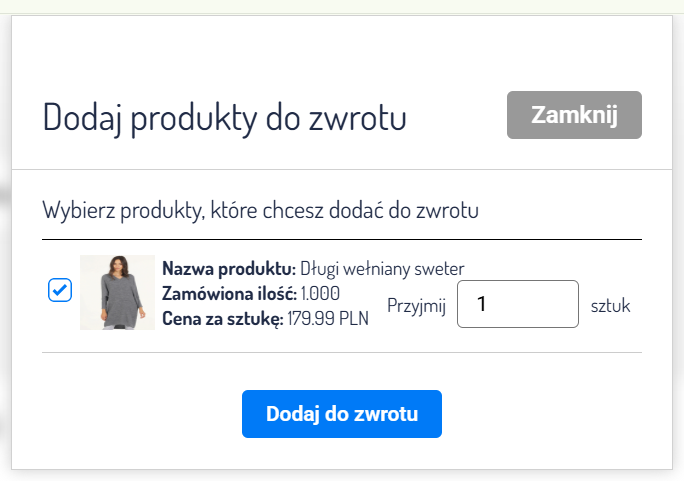 Po zatwierdzeniu statusów produktów na karcie zwrotu, zostaną one automatycznie przywrócone na stan magazynowy, a dalsze etapy realizacji zwrotu możesz procesować według własnych potrzeb.