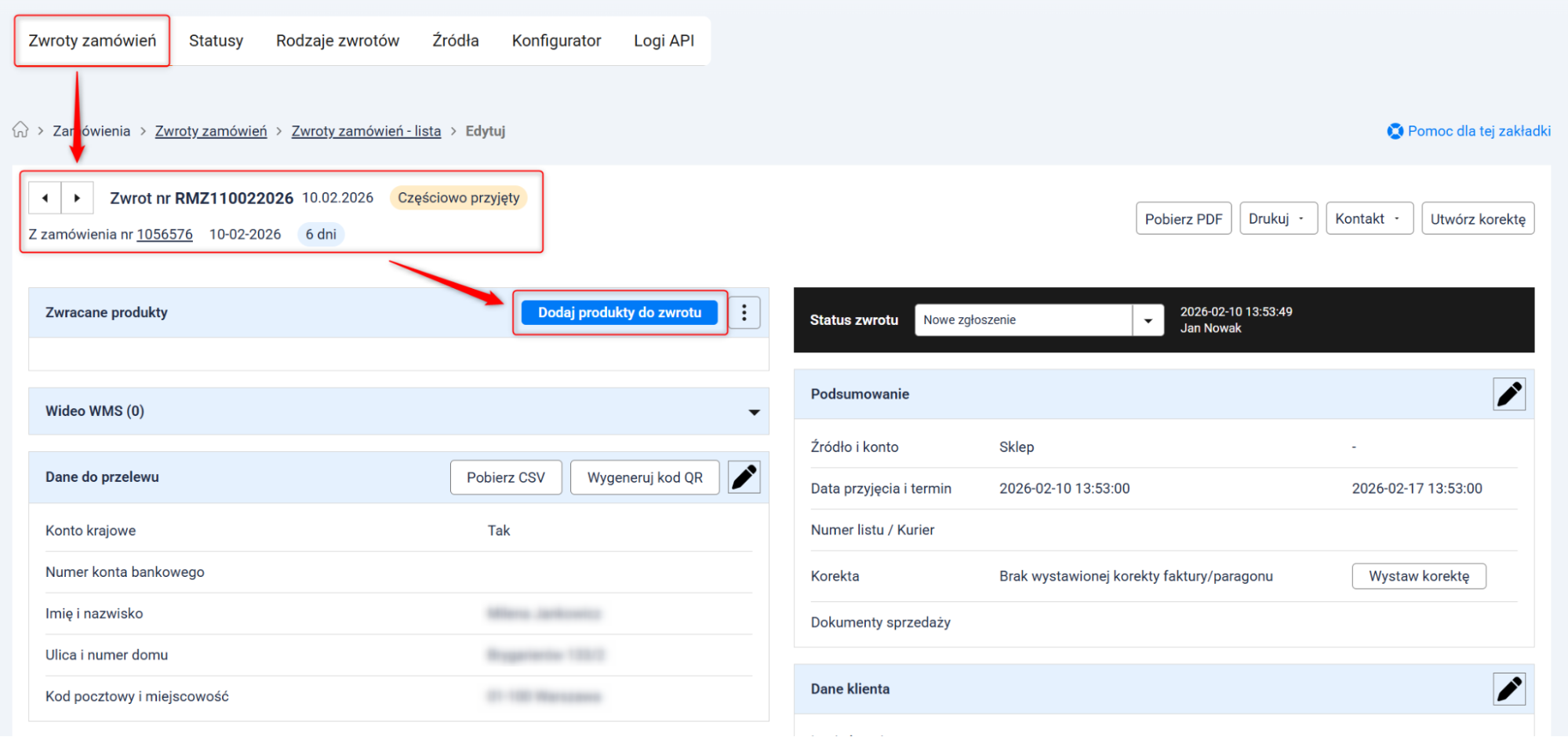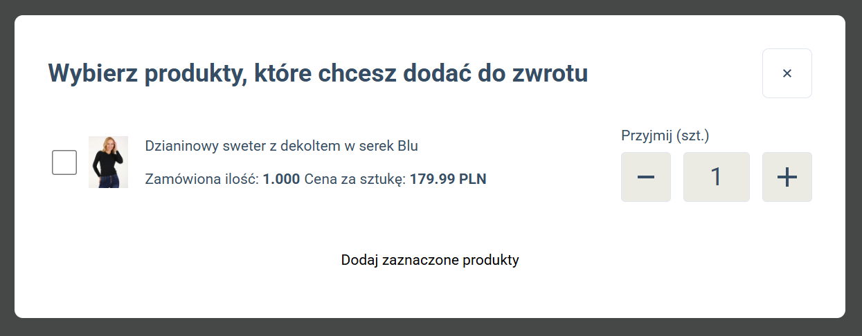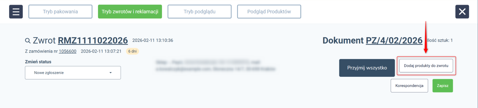 1. Otwórz kartę nowego zwrotu i dodaj produkty.