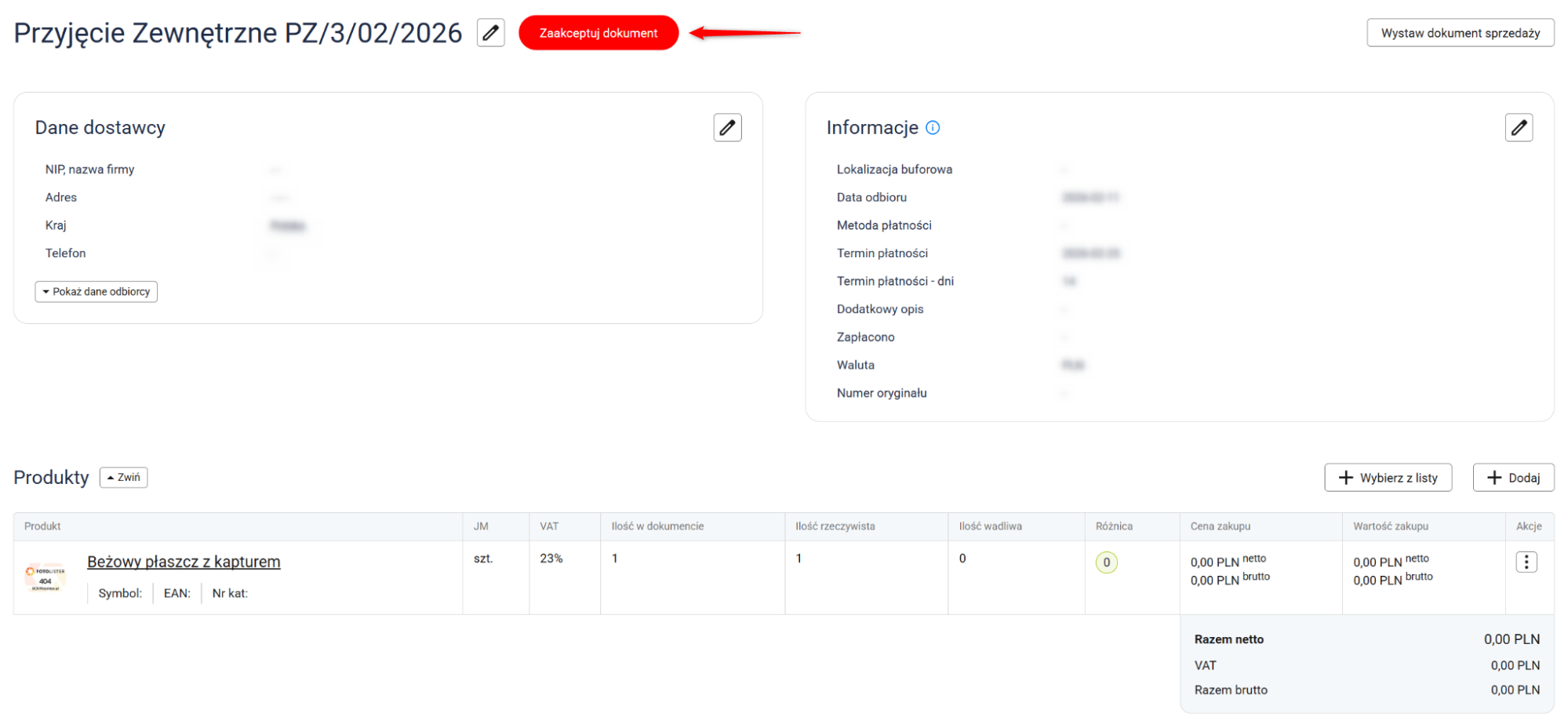 2. Zweryfikuj produkty w dokumencie i kliknij przycisk Zapisz.