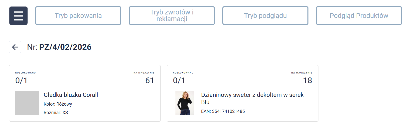 1. Po otrzymaniu nowego zwrotu, otwórz WMS i przejdź do Tryb zwrotów i reklamacji.