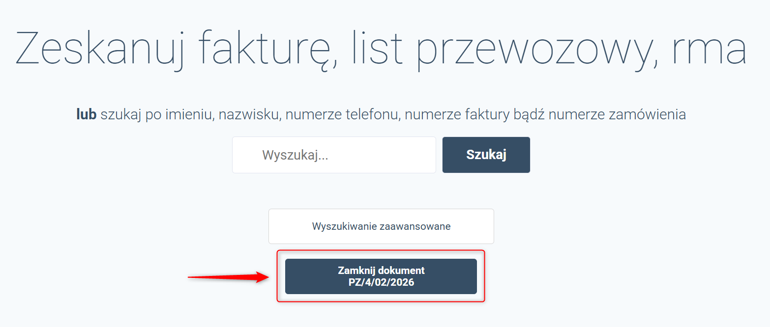 2. W tym miejscu możesz zeskanować wcześniej wydrukowane PZ albo kliknąć wybraną pozycję, aby otworzyć dokument.