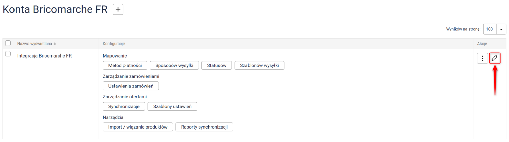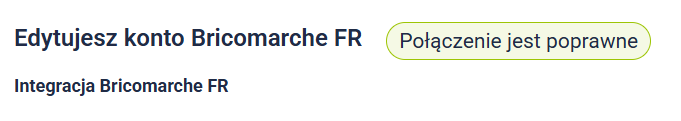 ikonę ołówka. Prawidłowo skonfigurowane konto będzie zawierać komunikat o poprawnym połączeniu (screen poniżej). Jeśli jeszcze nie podłączyłeś konta Bricomarche FR lub nie skonfigurowałeś mapowania, szczegółową instrukcję konfiguracji znajdziesz