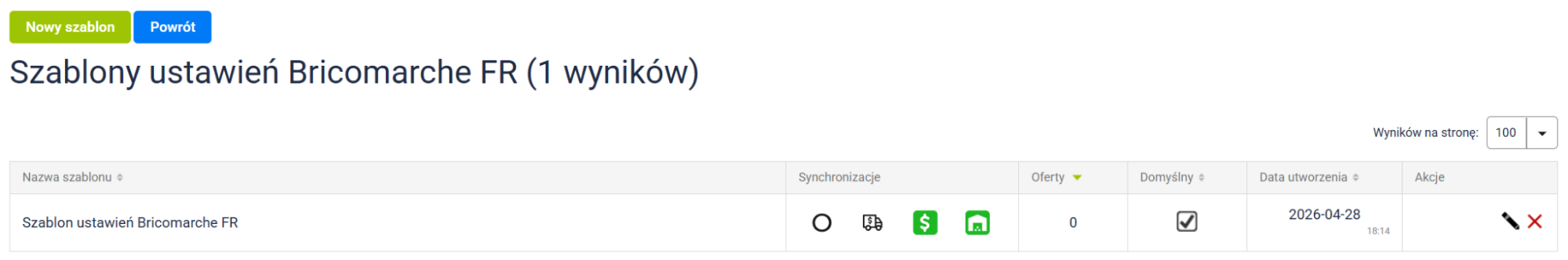 Szablon ustawień jest automatycznie przypisywany do każdej oferty utworzonej podczas importu. Dzięki temu ustawienia synchronizacji w tej ofercie zostaną od razu dostosowane do konfiguracji zapisanej w szablonie.