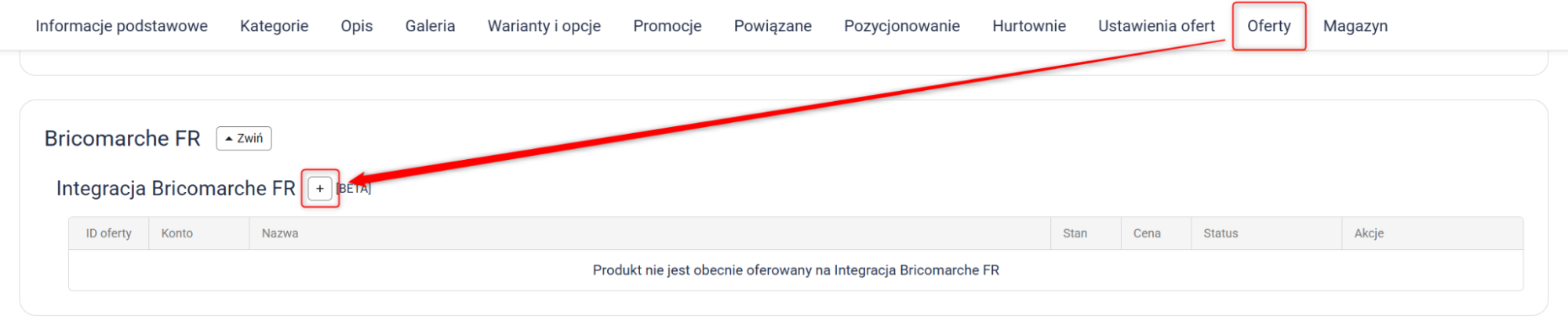 3. Przejdź do zakładki Oferty i w sekcji ofert Bricomarche FR kliknij przycisk z ikoną plusa.