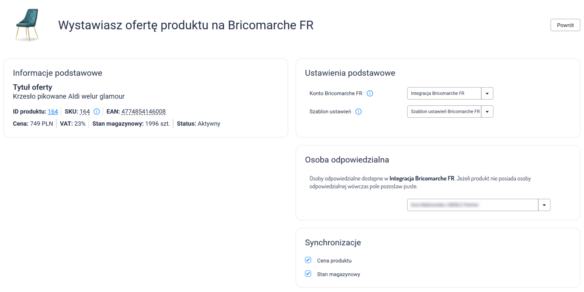W tej sekcji włączysz lub wyłączysz synchronizację konkretnych elementów oferty — takich jak cena czy stan magazynowy produktu.