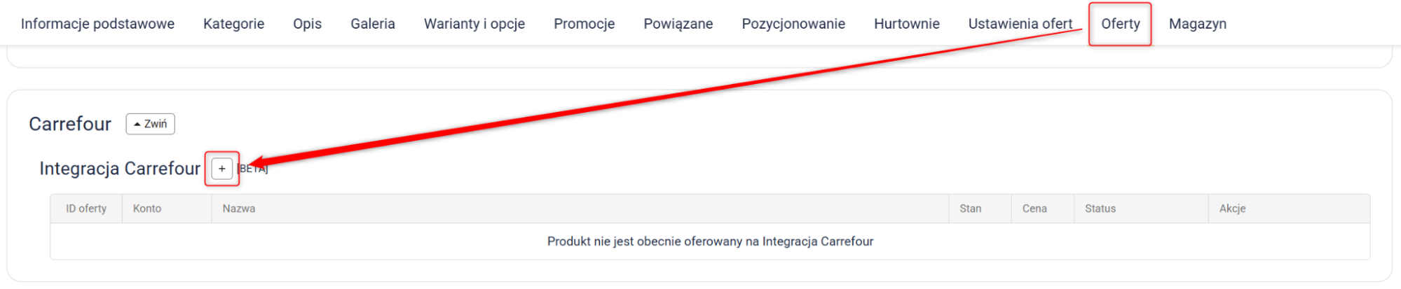 3. Przejdź do zakładki Oferty i w sekcji ofert Carrefour kliknij przycisk z ikoną plusa.