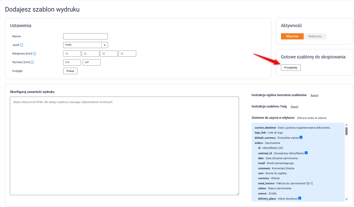 Jak dodać szablon wydruków?