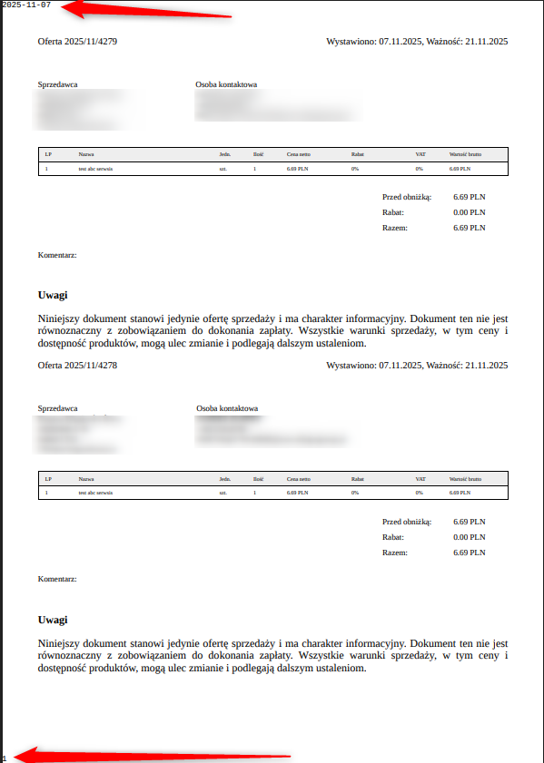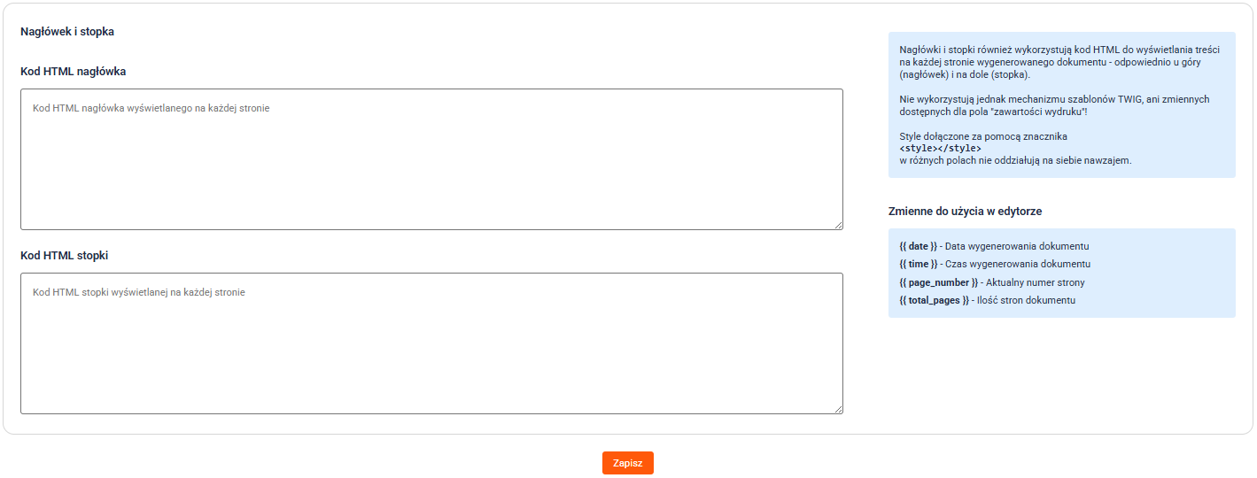 Uwaga: W szablonach wydruków znacznik script jest niedozwolony, a obsługa kodu JavaScript jest wyłączona.