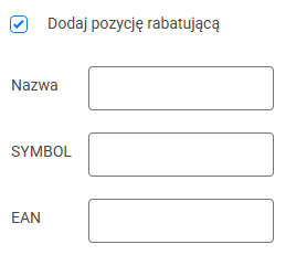 6. Opcjonalnie: Na dokumencie sprzedaży możesz także uwzględnić pozycję rabatującą, która automatycznie obniży wartość wcześniej dodanych produktów o 100% ich ustalonej ceny. Aby to zrobić, zaznacz checkbox Dodaj pozycję rabatującą.