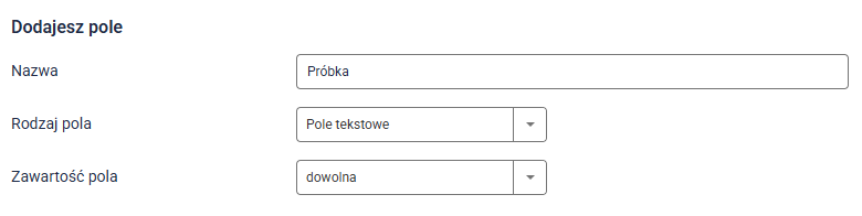 2. Wypełnij formularz tworzenia nowego pola dodatkowego i zapisz zmiany.