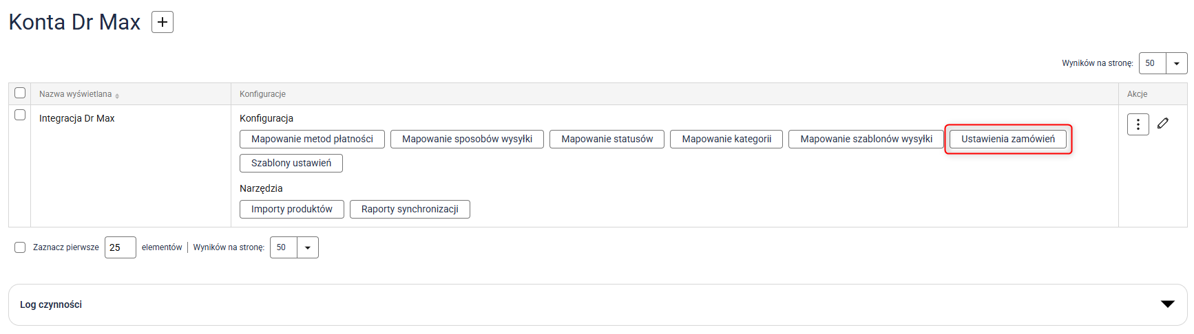 - Włącz pobieranie zamówień: Aktywacja/dezaktywacja pobierania zamówień dla konta Dr Max.