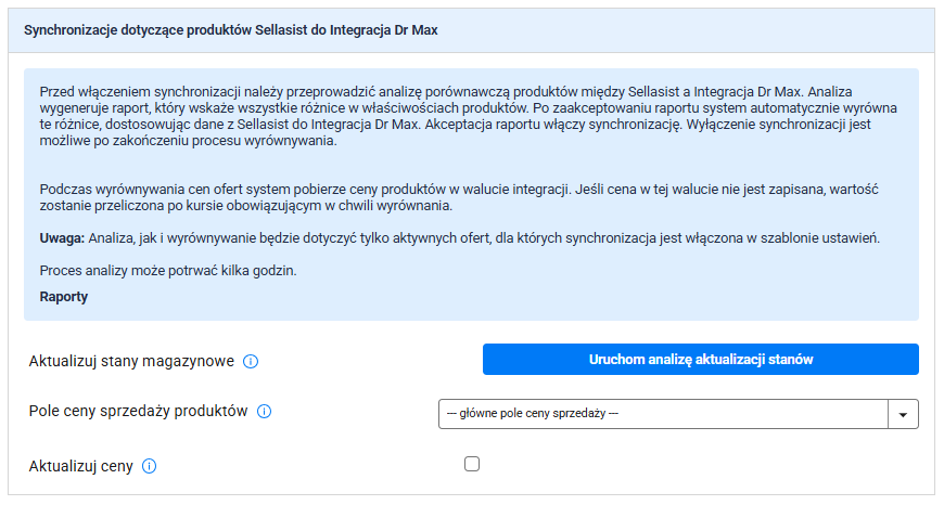 Uwaga: Synchronizacja działa wyłącznie w kierunku Sellasist → Dr Max.