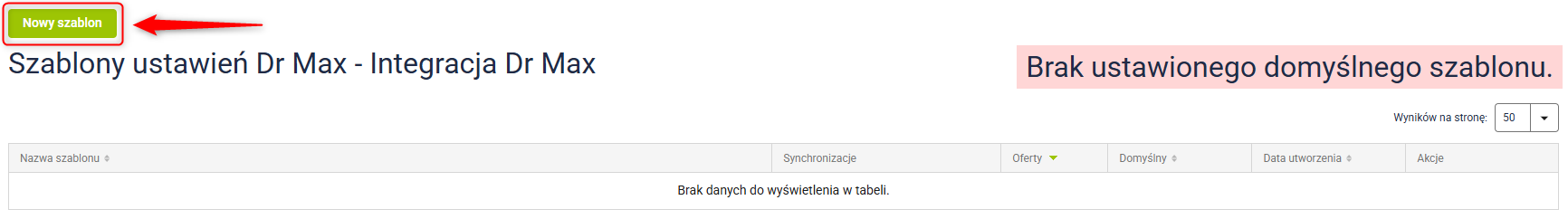 Uwaga: Ten krok jest wymagany przed uruchomieniem importu. Jeśli nie skonfigurujesz przynajmniej jednego szablonu oznaczonego jako Domyślny, import ofert nie będzie możliwy. Szablon domyślny jest automatycznie przypisywany do nowych ofert i aktualizuje ich ustawienia synchronizacji zgodnie z własną konfiguracją.