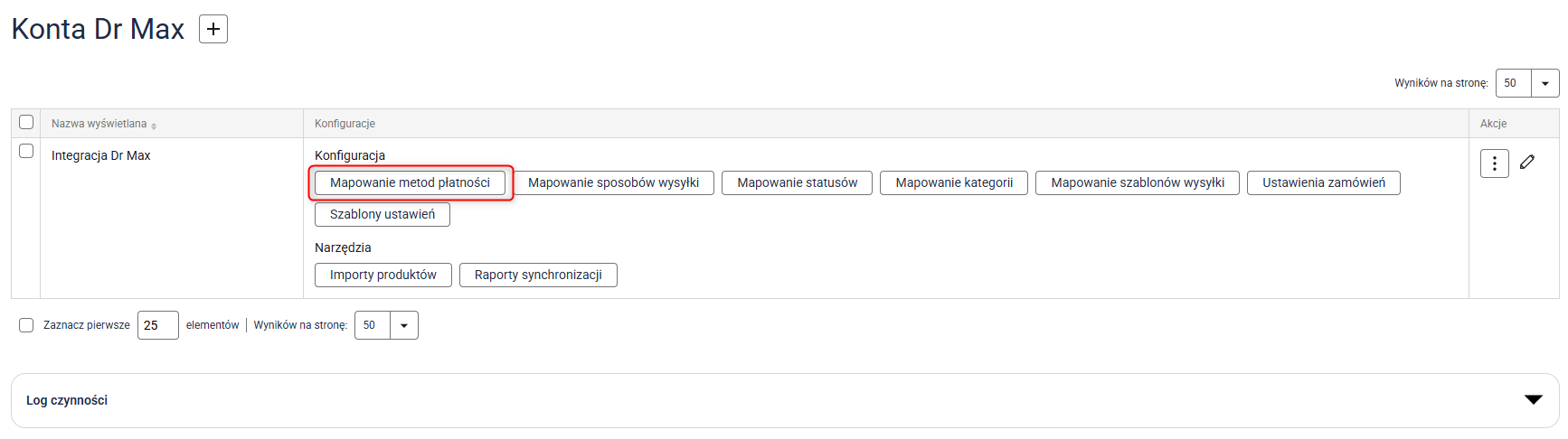 Kliknij przycisk Mapowanie metod płatności i przypisz metody płatności z Sellasist do odpowiadających im metod w Dr Max.