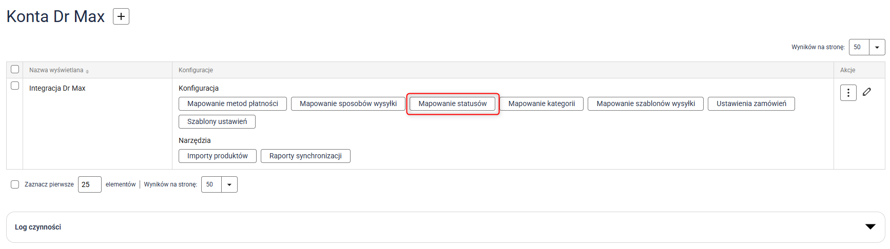 Kliknij przycisk Mapowanie statusów i przypisz statusy z Sellasist do statusów w Dr Max.