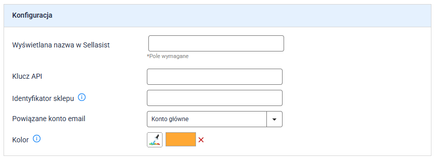 - Wyświetlana nazwa w Sellasist: Nazwa integracji widoczna w panelu Sellasist.