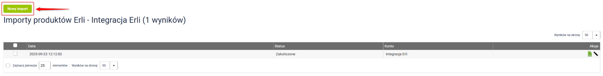 Opcja: Importuj produkty