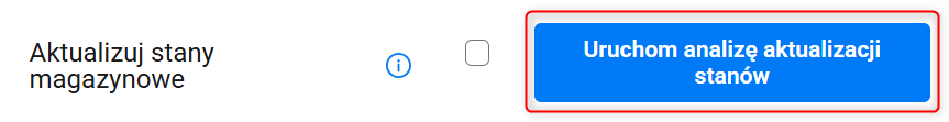 1. Aby uruchomić analizę, kliknij przycisk Uruchom analizę aktualizacji stanów. W zależności od ilości produktów i złożoności danych, proces może potrwać do kilku godzin.