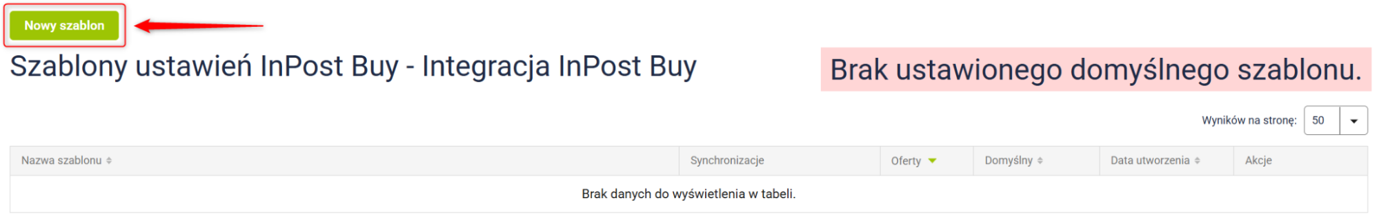 Uwaga: Ten krok jest wymagany przed uruchomieniem importu. Jeśli nie skonfigurujesz przynajmniej jednego szablonu oznaczonego jako Domyślny, import ofert nie będzie możliwy. Szablon domyślny jest automatycznie przypisywany do nowych ofert i aktualizuje ich ustawienia synchronizacji zgodnie z własną konfiguracją.