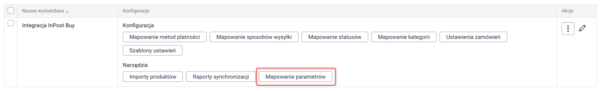 Kliknij przycisk Mapowanie parametrów i przypisz parametry produktów z Sellasist do parametrów produktów w InPost Buy.