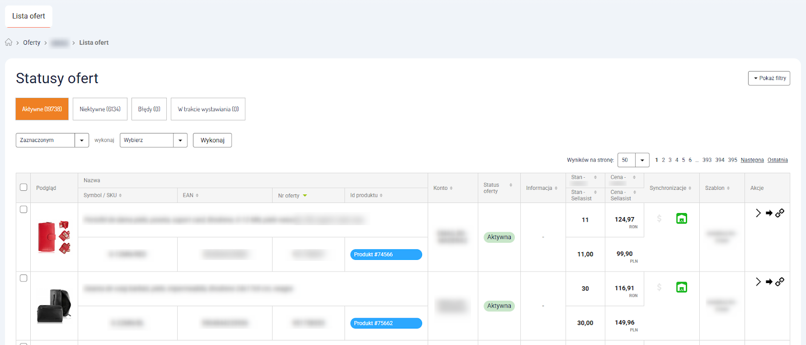 Uwaga: Oferty zostaną zsynchronizowane tylko wtedy, gdy w szablonie ustawień (krok 3) włączyłeś synchronizację stanów magazynowych oraz posiadasz przynajmniej jedną ofertę na InPost Buy. Głównym źródłem stanów magazynowych i cen są produkty. Jeśli w systemie znajdują się importowane oferty powiązane z produktem, ich wartości zostaną wyrównane do danych zapisanych w produkcie — i w ofercie Sellasist, i w ofercie integracji.