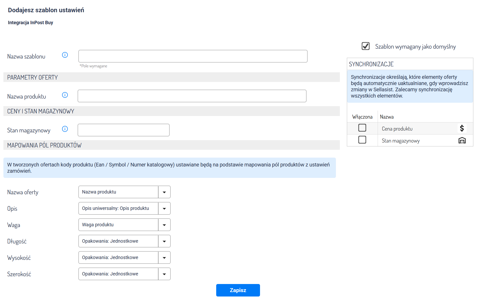 Sekcja: Synchronizacje dotyczące produktów Sellasist do konta InPost Buy