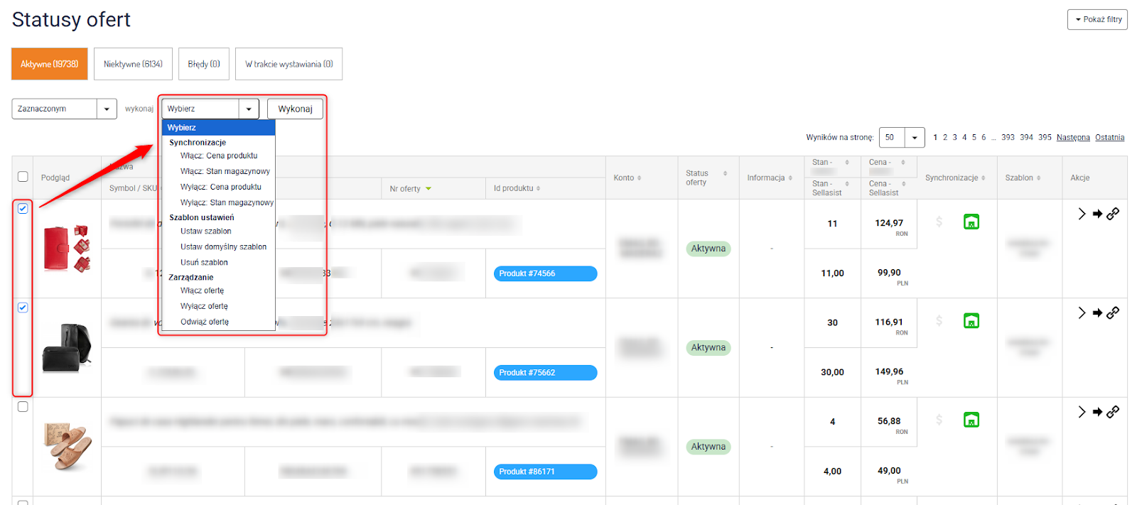 Na liście możesz zarządzać wszystkimi ofertami, a także wykonywać na nich akcje masowe.