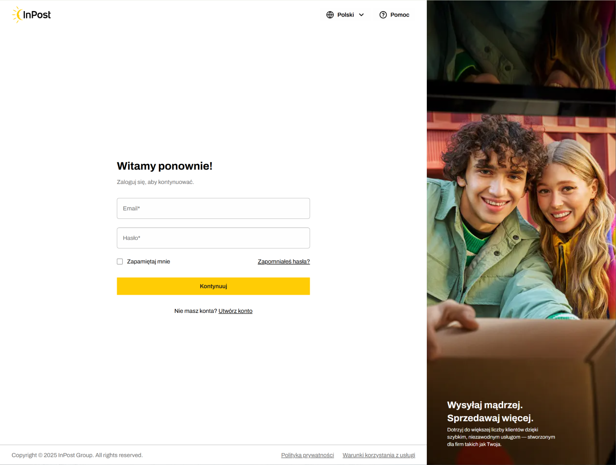 3. Zostaniesz przeniesiony na stronę logowania InPost. Zaloguj się na konto, które chcesz podłączyć.
