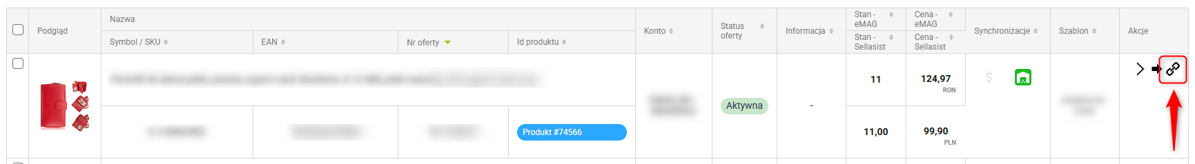 Jeśli chcesz odwiązać dany produkt, przy konkretnym produkcie kliknij przycisk z ikoną wiązania.