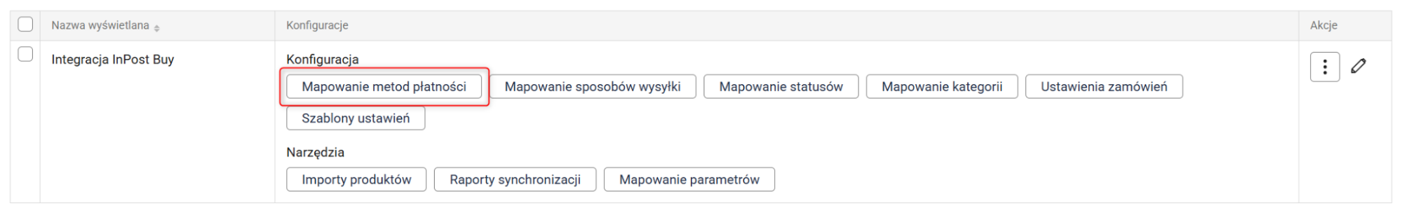 Kliknij przycisk Mapowanie metod płatności i przypisz metody płatności z Sellasist do odpowiadających im metod w InPost Buy.