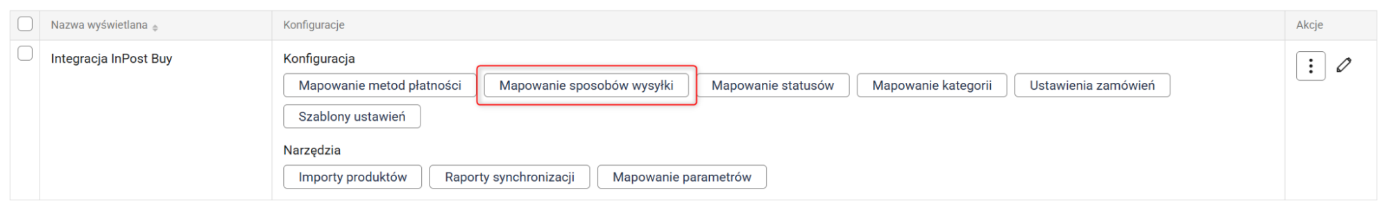 Kliknij przycisk Mapowanie sposobów wysyłki i przypisz wybrane przez siebie sposoby wysyłki z Sellasist do metod wysyłki w InPost Buy.