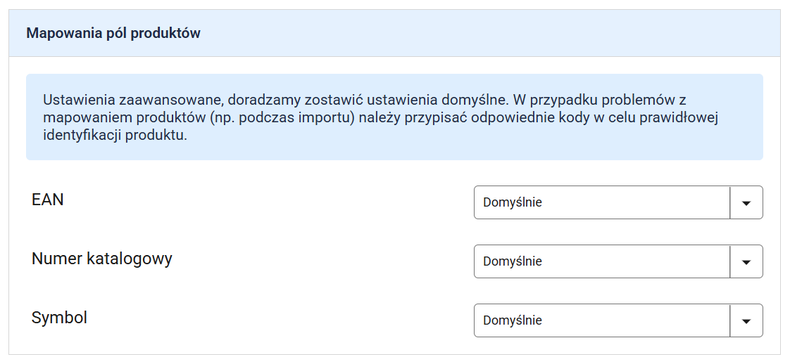Uwaga: System będzie identyfikował produkty zgodnie z ustawieniami w sekcji mapowań pól produktów (krok 2). Jeśli zmieniłeś ustawienia domyślne mapowania, uwzględnij zmiany także w tym miejscu.