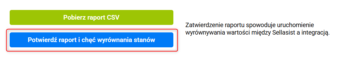 4. Jeśli wszystko się zgadza, kliknij przycisk Potwierdź raport i chęć wyrównania stanów. W zależności od ilości ofert, proces może potrwać do kilku godzin.