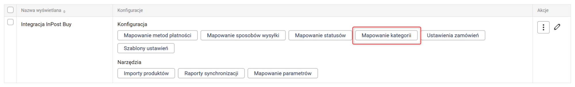 Kliknij przycisk Mapowanie kategorii i przypisz kategorie produktów z Sellasist do kategorii w InPost Buy.