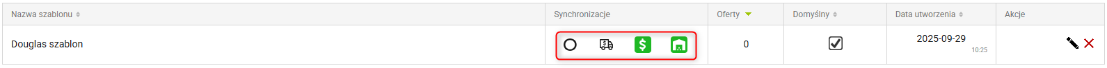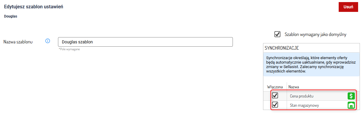 Szablon taki jest przypisywany automatycznie do ofert, tworzonych podczas importu. Szablon automatycznie zaktualizuje ustawiania synchronizacji na takie jak w szablonie dla powiązanej z nim oferty.