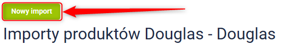 1. Kliknij Nowy import w panelu Sellasist, aby rozpocząć konfigurację importu produktów z Douglas.
