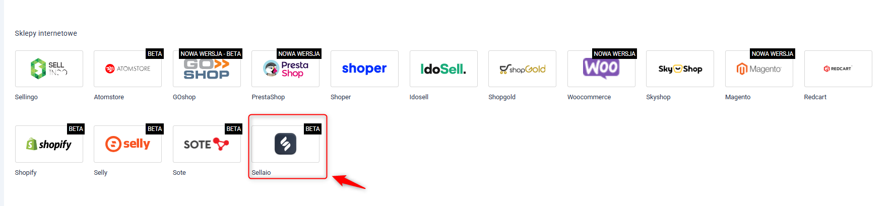 Na ten moment integracja Sellaio nie obsługuje jeszcze: