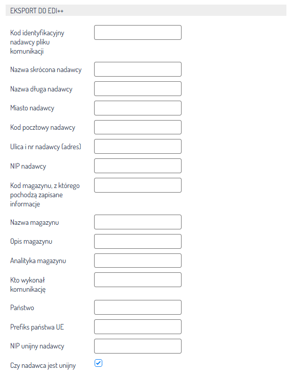 Jeśli korzystasz z programów fakturowo-magazynowych obsługujących format EDI++, tutaj możesz skonfigurować własne ustawienia eksportu zgodnie z opisem przy każdym polu.