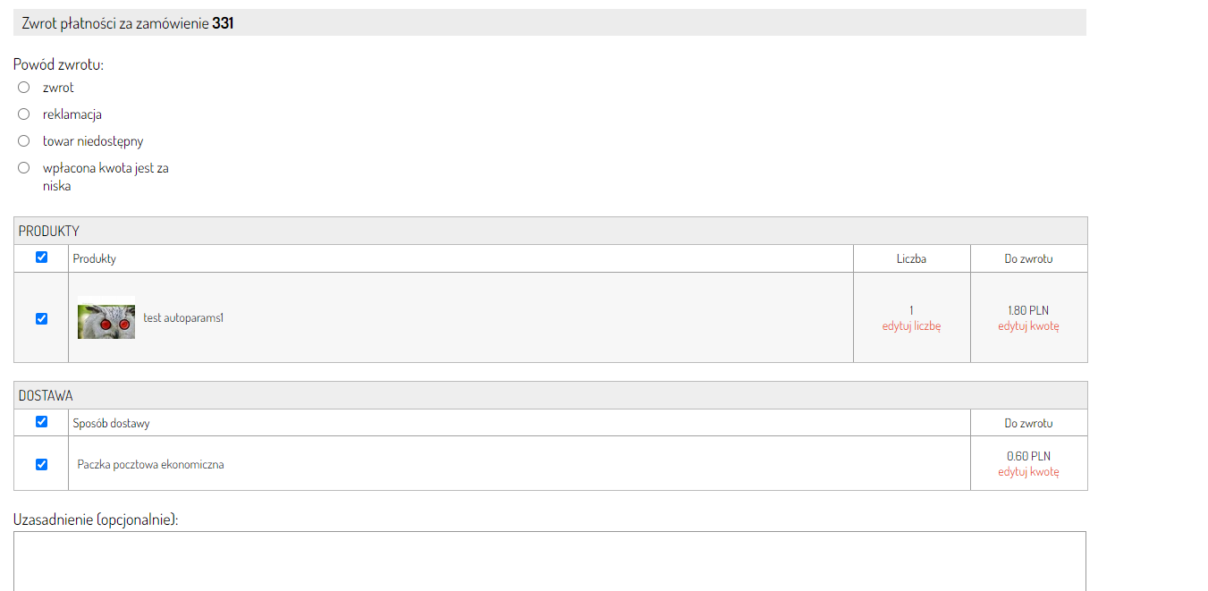 Po dokonaniu zwrotu system automatycznie uzupełni stany magazynowe o zwrócone produkty.