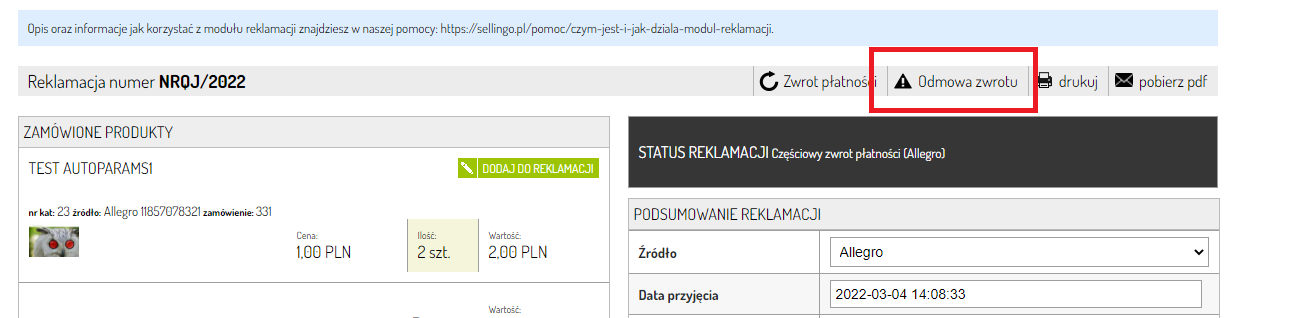 Moduł reklamacji zwrotów