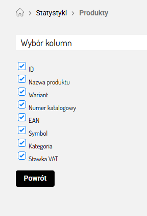2. Z zakładki Statystyki ⇨ Produkty.
