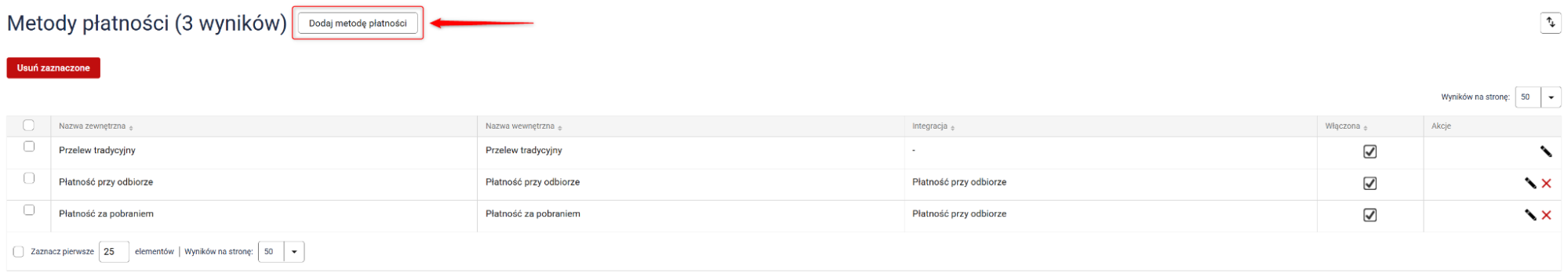 1. Przejdź do Administracja → Metody płatności i kliknij przycisk Dodaj metodę płatności.