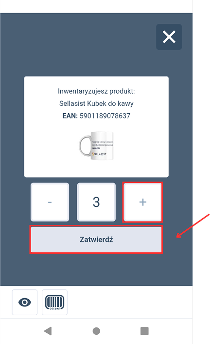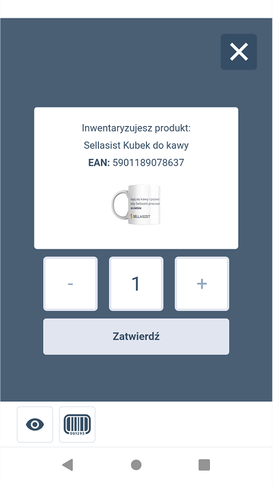 15. Po zeskanowaniu produktu, którego nie mieliśmy w bazie i zatwierdzeniu zostanie on dodany do magazynu Sellasist.