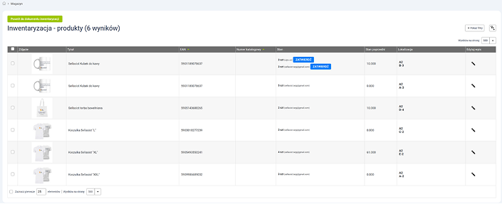 11. Zmiany dokonywane w aplikacji będą wyświetlane na bieżąco w panelu administracyjnym Sellasist w: Magazyn ⇨ Inwentaryzacja ⇨ Inwentaryzacja - produkty.