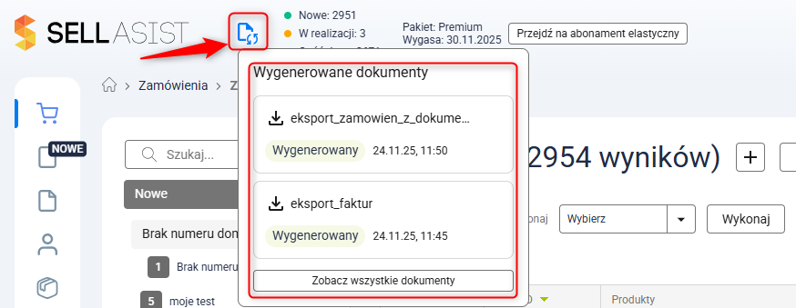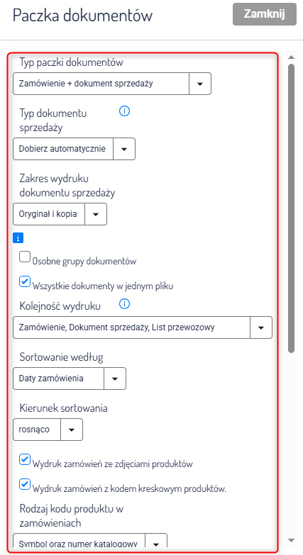 Dzięki funkcji generowania paczek dokumentów, możesz wygenerować i wydrukować wszystkie dokumenty dla wybranych zamówień.