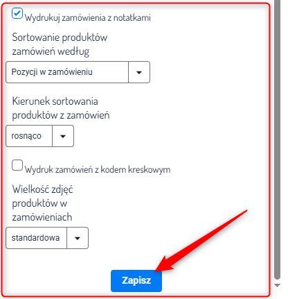 6. Wybierz kolejność wydruku dokumentów i kliknij, Zapisz.