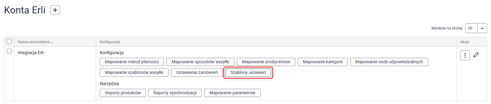 - Szablon ustawień: Wybór spośród wcześniej utworzonych szablonów ustawień dla tej integracji.